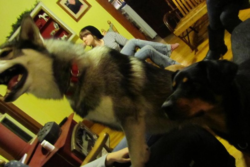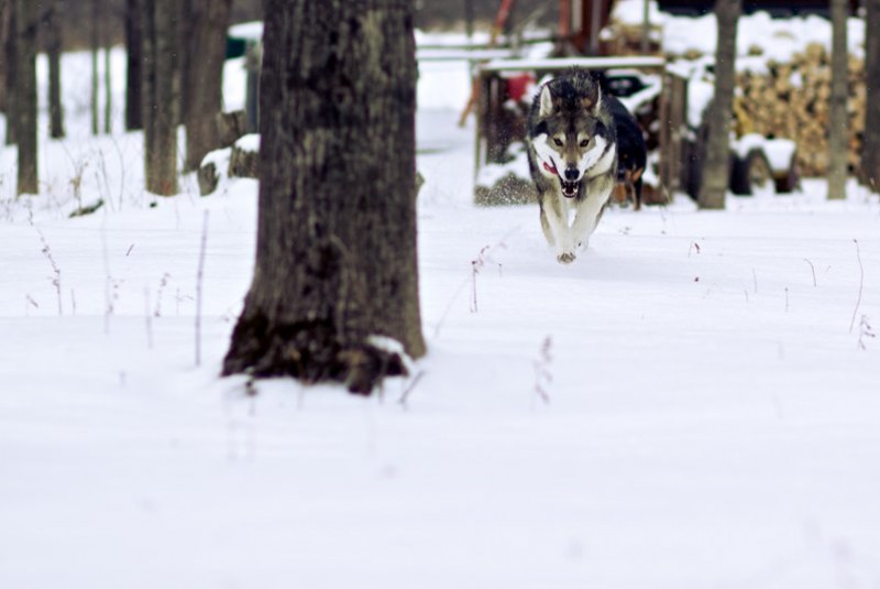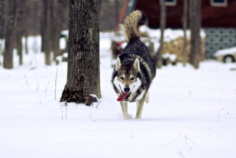 1. How did you discover this breed?I discovered the Tamaskan breed while looking into purchasing a German shepherd or wolf hybrid. I stumbled upon some links/articles about a breed of dog that had all the physical traits of a wolf, yet were better mannered. Naturally, I had to investigate. After doing my homework on the breed, I decided that this was the exact breed of dog I was looking for. Upon researching breeders, I came across the Blustag Tamaskan and was thoroughly impressed with the physical attributes of the kennel's dogs. This led to what may have been unnecessarily numerous phone calls to Kevin Seterini, the breeder, at all hours of the day or night; who was always available, happy and very well informed on everything related to the breed. 2. What did you initially thought a Tamaskan would be like?My first observations based on the pictures I saw of Tamaskans were of ferocity and strength (obviously awesome). After reading more into the breed, I discovered (to my pleasure) that this was not the whole case. The breed is intelligent, observant, humble, sociable, and above all has a strong loyalty to its family. 3. How was the puppy during the first night home?The puppy (Tidus)'s first night home was a pleasure! He was curious about everything and everyone. He had a strong desire to get in the face of every pet in our home and then commence playing. At first, the other dogs seemed caught off guard by his bold and outgoing behavior. Our fearless beast of a Rottweiler continually growled at him although he was aware of boundaries (impressive for such a young animal), yet his spirit was not broken. Our Australian shepherd spent the evening fleeing Tidus at his every approach. 4. How does the Tamaskan interact with other animals, children, and strangers?Tidus has the ability to turn mean dogs gentle, and those who are "not dog people" into Tidus people. One of my friends who is allergic to dogs can't get enough of him. He said, "I always plan a head and take a lot of allergy medication before coming out." I have three nephews and two nieces, all between the ages of 2 and 13. Tidus is as gentle as humanly possible. Tidus' relationship with the other dogs has grown increasingly strong. The Rottweiler and him are now best friends and spend most of their day together. This has proven beneficial in our Rottweiler's behavior. She has become far more relaxed with people in general. Tidus is playful with all beings, but utilizes discretion when playing with smaller animals and children. Even our horse in the barn gets along with Tidus. 5. What is your Tamaskan's personality like currently?Tidus has maintained his very outgoing and playful attitude toward life. He has also become more patient. An excellent listener, Tidus shows a great deal of intent to please me, his owner, which works out perfectly. Tidus has grown increasingly intelligent. I am certain there is no trick that he cannot learn. His book of tricks includes, spinning in a circle on his hind legs, and balancing food on his nose until I snap, then flicking it into the air and catching it in his mouth. He can come and stop on command. I can put his food before him, telling him to sit and stay, and proceed to leave the room for several minutes and all the while he will still be in the same position, waiting for the order to eat. He can also "sneak," crawling on his belly for whatever distance, twirl, speak, shake, and rollover. He has also remained humble. Tidus takes discipline well and learns from it; minus the occasional treat he finds in the garbage. When told to relax, he will calm down. He knows when it's just too much to handle. Tidus loves everything about the outdoors; he especially enjoys the snow!! 6. Main TestimonialWhile searching for a dog, I spent many late nights reading through all the finite details on the various breeds available. Once I came across the Tamaskan breed, I developed a sincere interest in these dogs. This was only strengthened upon my discovery of The Blustag Tamaskan and the beautiful dogs they were breeding. It wasn't even three months later that I was in the Syracuse, NY airport picking up my puppy. He slept in my arms for the majority of the 3 ½ hour ride home, which made my precious little heart melt =p. It is now one year and six months later, and Tidus has been the best investment I have ever made. He is beautiful. No better word describes the naturally gorgeous coloring and physical attributes Tidus displays. He demonstrates daily his humility and loving nature. Tidus and our mini-Australian Shepherd (Pippin) love to run together. Tidus, being the gentle character he is, lets Pippin chase him around the yard while nipping at his ankles and barking at him. At first, I thought I should be concerned that Pippin might be too aggressive, but the two quickly grew to love one another. They nap together, climbing into a crate that they are no longer required to sleep in, and fall asleep. Tidus has had everyone laughing at one point or another with his unique behavior. Tidus is completely loyal to me. The few times he has taken off into our woods, a stern call and a loud clap brings him flying through the woods in the most spectacular manor. He truly resembles a wolf from his piercing eyes, to his thick wool like coat. Tidus enjoys howling whenever the neighbors' dogs are let out, reinforcing the streaking image of a wolf in its full majesty. I take Tidus for jogs in town every week, and every week somebody new stops me and talks to me about how beautiful he is. His charming nature and good looks attract everyone. Tidus is all I could have ever asked for out of a companion and friend; this and much more. He has been a blessing in my life and in the lives of my family members as well, from the way he gently nibbles on my knuckles when being playful to him coming to lay beside me when I am tired, or sad. I look forward to future years with him, and will certainly purchase another Tamaskan at some point